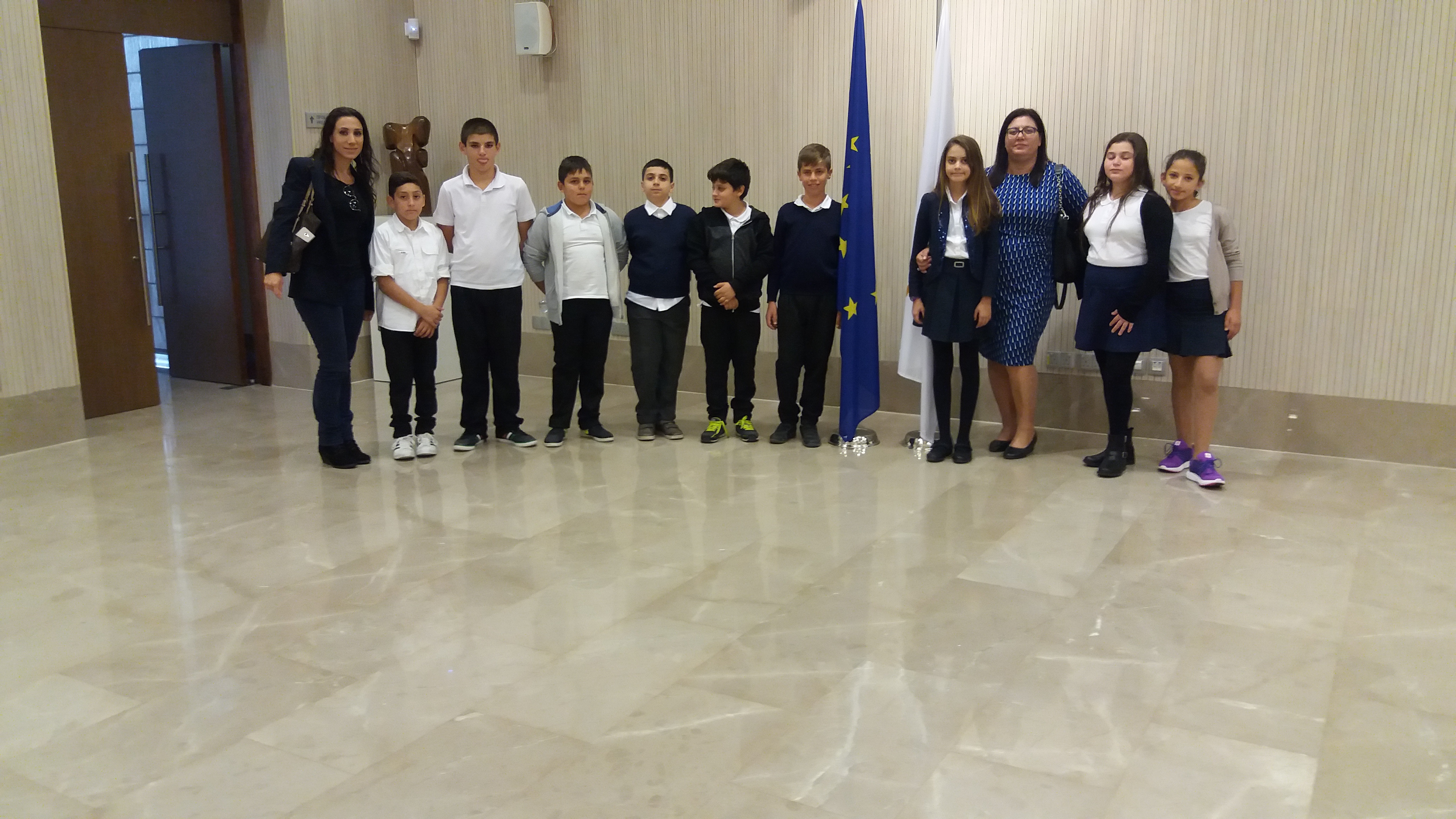 Με την ευκαιρία της εβδομάδας παιδιού (20-26 Νοεμβρίου), η Παγκύπρια Συντονιστική Επιτροπή Προστασίας και Ευημερίας Παιδιού (ΠΣΕΠΕΠ) οργάνωσε επίσκεψη στο Προεδρικό Μέγαρο παιδιών από διάφορα σχολεία όλων των βαθμίδων και από όλες τις επαρχίες. Τα παιδιά της Στ τάξης φάνηκαν ιδιαίτερα τυχερά φέτος, αφού το σχολείο μας επιλέγηκε από την ΠΣΕΠΕΠ για την εκπροσώπηση της επαρχίας μας στην εκδήλωση αυτή. Είχαν τη μοναδική ευκαιρία να ζήσουν μια εμπειρία ζωής που περιελάμβανε φιλοξενία και ξενάγηση στους χώρους του Προεδρικού Μεγάρου. Στην εκδήλωση που ακολούθησε μίλησαν στα παιδιά η Υπουργός Εργασίας και Κοινωνικών Ασφαλίσεων εκπροσωπώντας τον Πρόεδρο της Δημοκρατίας, καθώς και η Επίτροπος για τα δικαιώματα του παιδιού και επιδόθηκε υπόμνημα προς την κυβέρνηση από την πρόεδρο της Παιδοβουλής. Μετά από την επίσκεψη αυτή τα παιδιά επισκέφτηκαν τα Φυλακισμένα Μνήματα όπου κατέθεσαν στεφάνι εκ μέρους του σχολείου. Να σημειωθεί ότι η εκδρομή αυτή στη Λευκωσία ήταν δωρεάν για τα παιδιά!