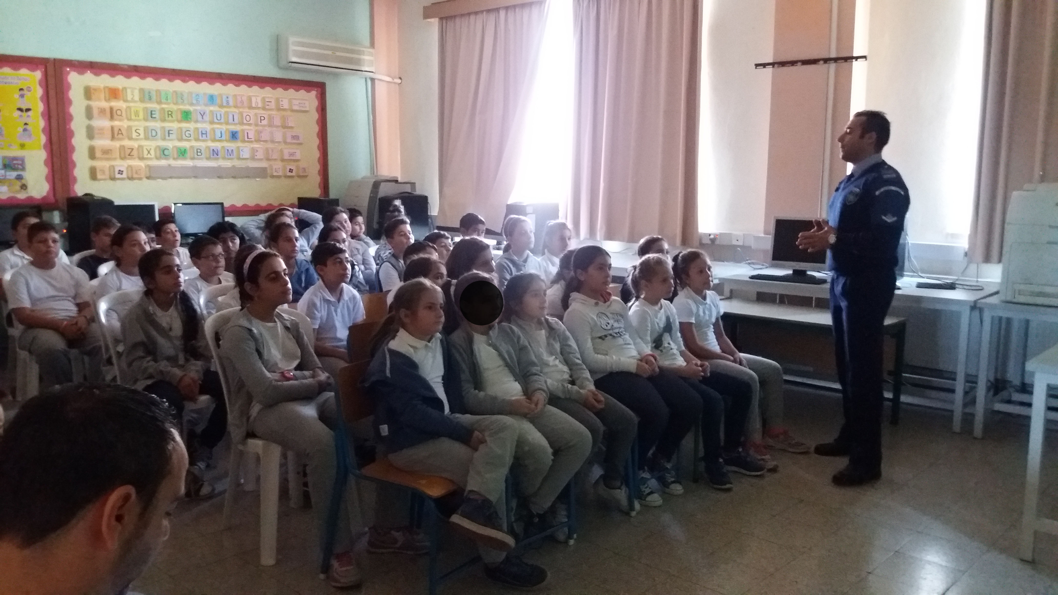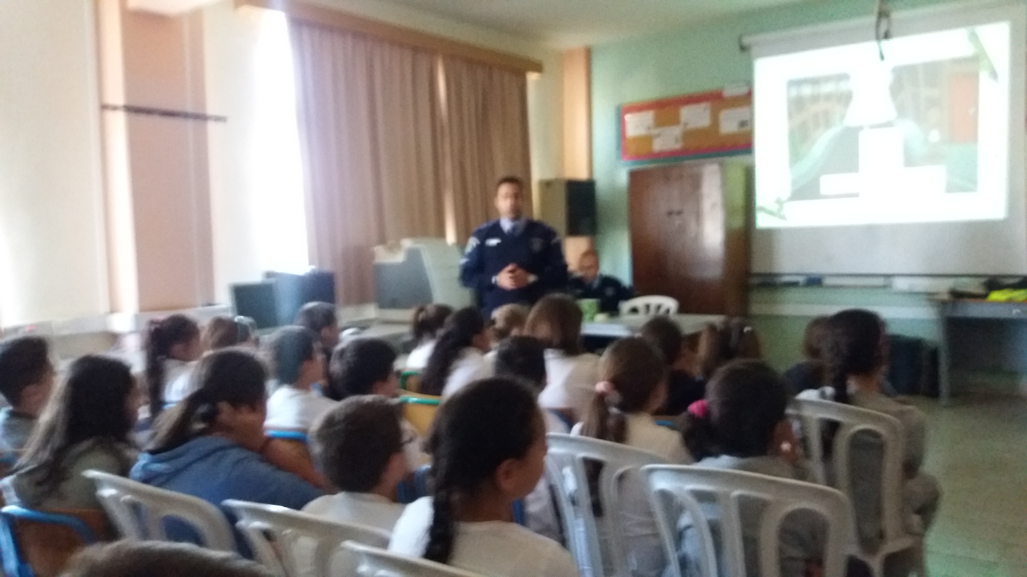 Εκπρόσωποι της αστυνομίας (οι αστυνομικοί της γειτονιάς που συνεργάζονται με το σχολείο μας) έδωσαν δύο διαλέξεις με παράλληλες προβολές με θέμα την «Ασφαλή οδική συμπεριφορά των παιδιών» προς Α1, Α2, Β, Γ και προς Δ, Ε, Στ. Τέτοια μαθήματα είναι μεγάλης σημασίας για την ασφάλεια και τη ζωή των παιδιών μας!